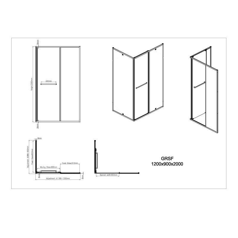Душевая кабина GRSF 90x120x200 MATTE BLACK 8mm